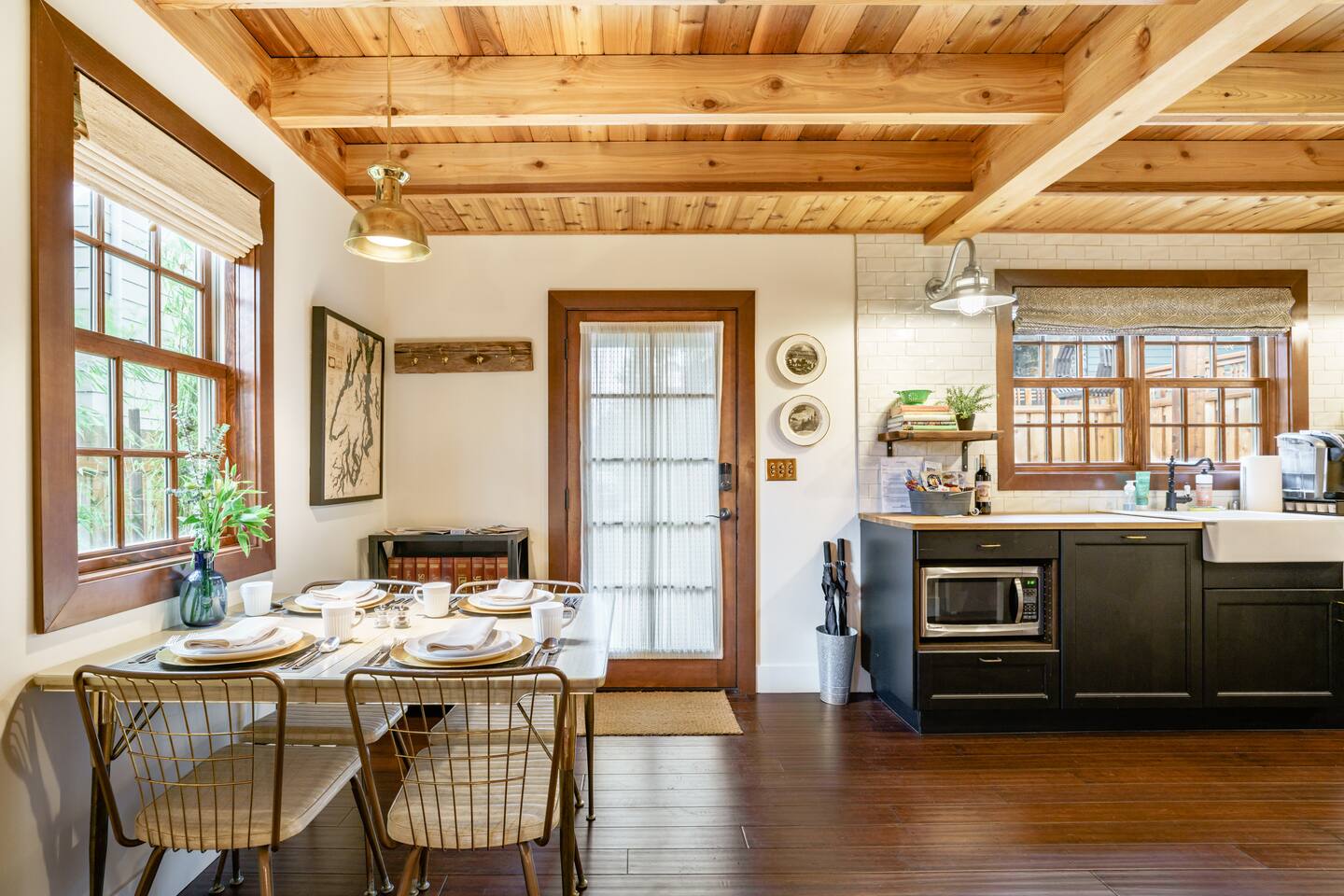 Welcome to The Earl Carriage House, your home-away-from-home in the heart of Seattle's Ballard neighborhood. Our little cottage is neatly tucked between houses that dot the idyllic tree-lined street. The Carriage House is the perfect base for your Seattle stay, designed to put you right at home from the moment you step through the door. Inside, you'll find a spacious interior with with rustic wood accents, cozy textiles, and natural elements that create a warm and inviting atmosphere.