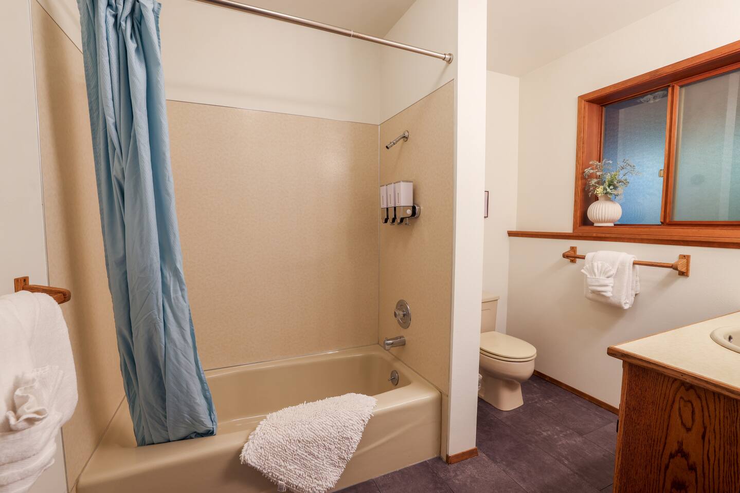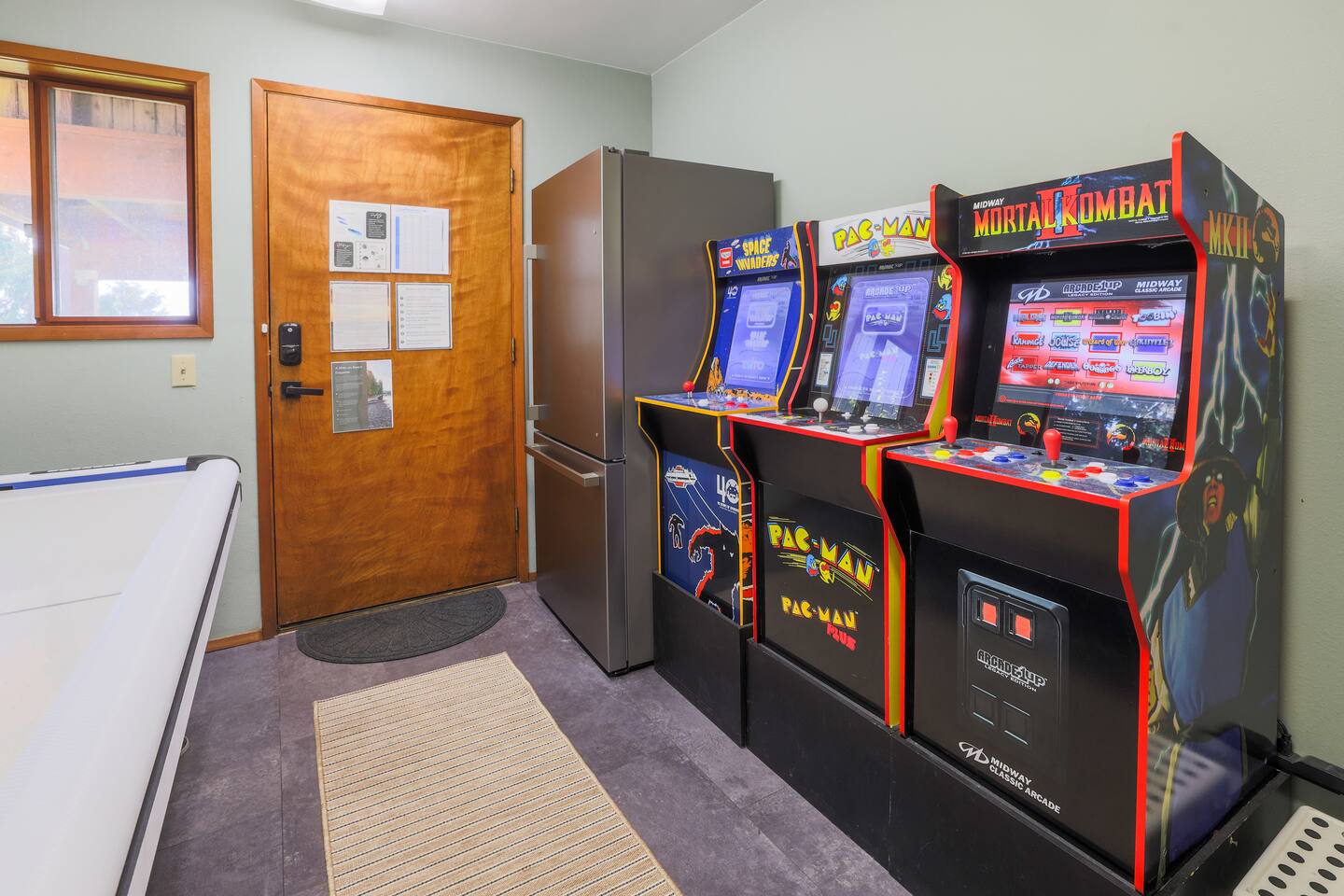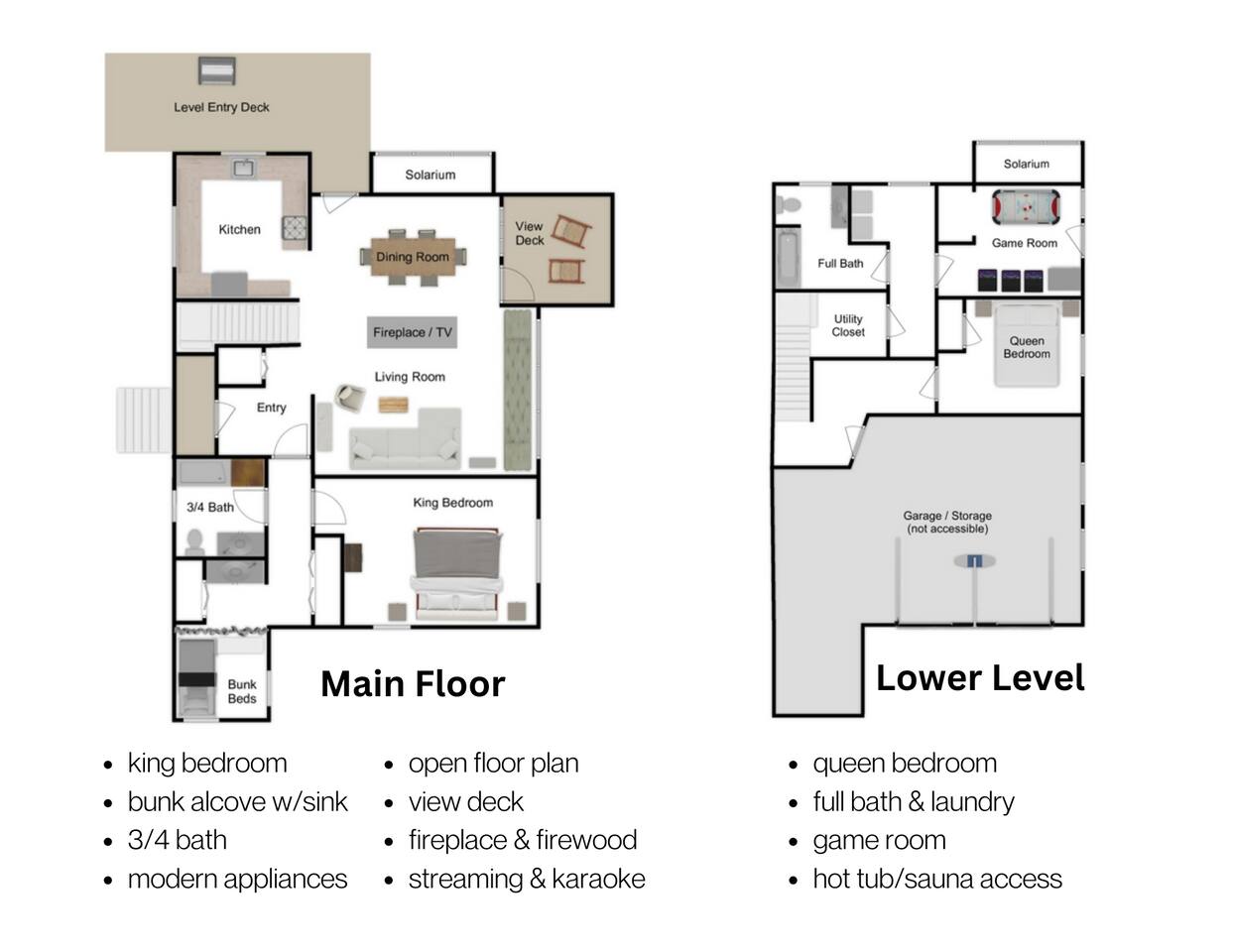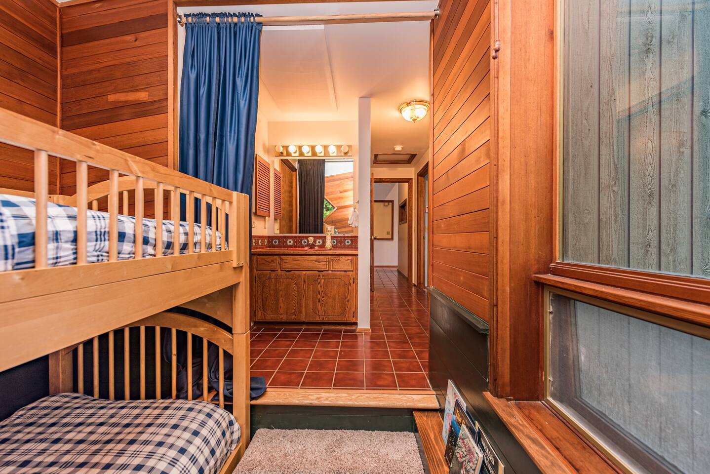 The cabin comfortably accommodates up to 5 adults. Please note that the top bunk is not suitable for adults. The third "bedroom" is a cozy, semi-private alcove featuring twin bunk beds. While it does not have a door, it offers thoughtful amenities including a dedicated closet, sink, and a privacy curtain to ensure comfort. For a visual understanding of the layout, please refer to the floor plan included in the listing photos. The cabin is substantially set back from a 2-lane highway and separated from it by a section of forested land. Even so, it is possible to hear some occasional road noises when spending time outside. It is our honest opinion that this does not deter from the peace and tranquility of the property in the slightest. Unfortunately, we are rarely able to accommodate early check-in or late check-out. Due to the size of the house and number of amenities, our cleaning team requires the full window for cleaning and maintenance.